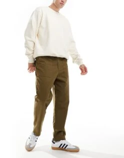 Farah Hawtin Tapered Fit Workwear Patch Chinos In Khaki For Men